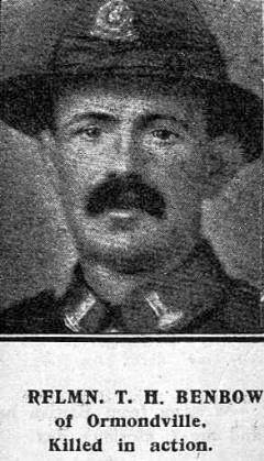 Benbow was born 1880 in Norsewood. He was killed 7th June 1917 in