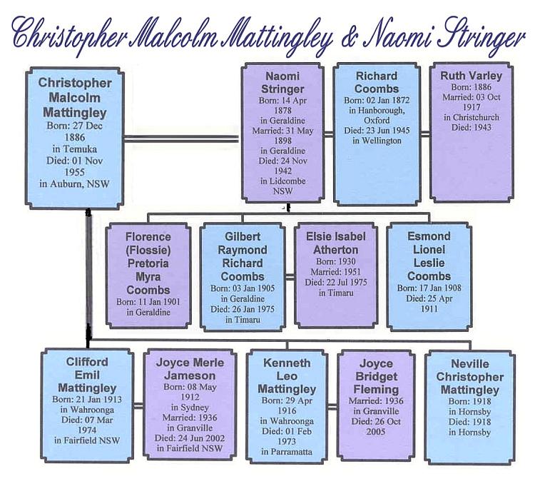 Kenneth Leo & Joyce Bridget Mattingley Clifford Emil & Joyce Merle Mattingley Christopher Malcolm and Naomi Coombs Richard Coombs & Naomi Stringer