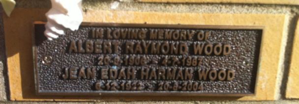 J EAN EDAH HARMAN BARNEY was born 06 Dec 1922 in Georgetown, Waitaki, the youngest daughter of Charles Barney and mother Amy Benbow Mattingley and d: 20 Aug 2004 aged 81Y. Cremated Nth Shore Cemetery.She mar: 1956 to ALBERT RAYMOND WOOD, the son of WILKINSON WOOD and ELIZABETH LEACH. He was born 20 Aug 1906, and died 04 Jul 1986 aged 81Y Alberts first marriage was to Lillian Mavis Inger in 1928 (their dau was born at Pentlands, Devonport, Auckland) They divorced in 1952. Children of JEAN BARNEY and ALBERT WOOD are: i. KEVIN WOOD, b. Auckland; he mar: English born JEANETTE DENNY in Auckland.