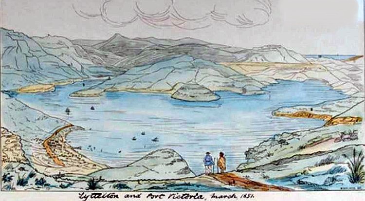 Hocken’s hand: Town of Lyttelton March 1851 T.M. Hocken; label: Na Te